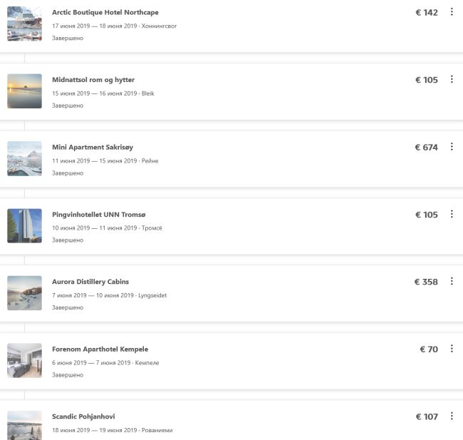 Скрин из букинга. Тут еще не хватает 1 ночи в Тромсе 16-17 июня за 100 евро
