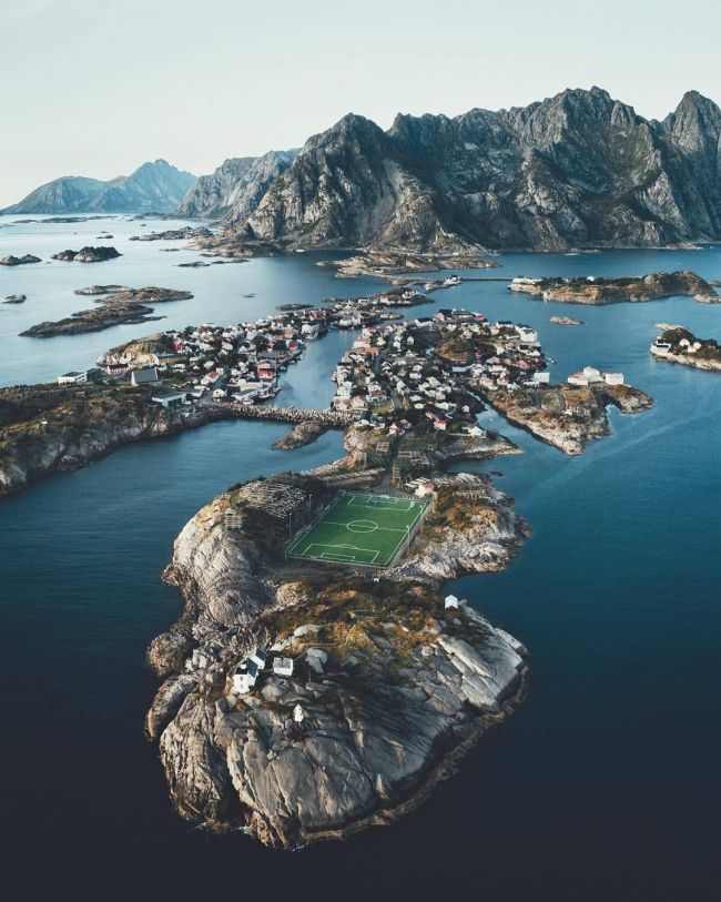 Это футбольное поле на Лофотенах тоже часто мелькает в инстаграме