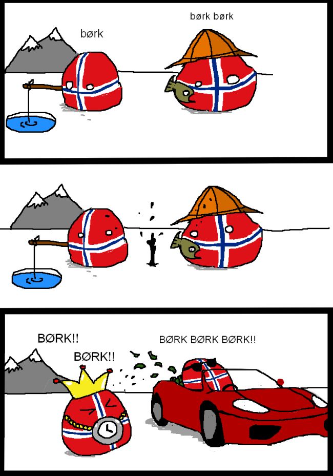 Впринципе Норвегия была довольно бедной страной и занималась рыболовством, пока в 70е не нашли нефть. Но основную прибыль от нефти они не проедают, а складывают в кубышку. Государственный пенсионный фонд Норвегии (он же Нефтяной фонд), самый большой фонд национального благосостояния в мире и составляет 2.2 трл долларов. Это примерно в 10 раз больше замороженных резервов РФ. Но фишка еще в том, что в России этот фонд рассчитан на 140 млн человек, а в Норвегии живет всего 5 млн.