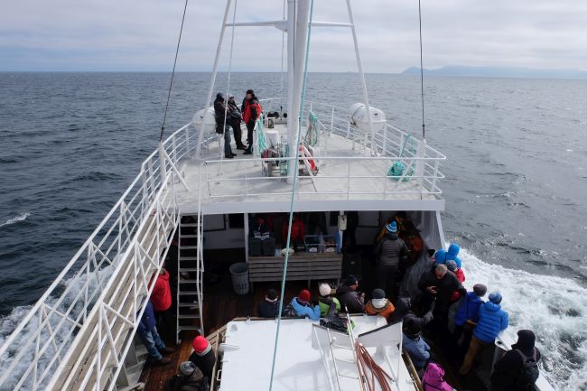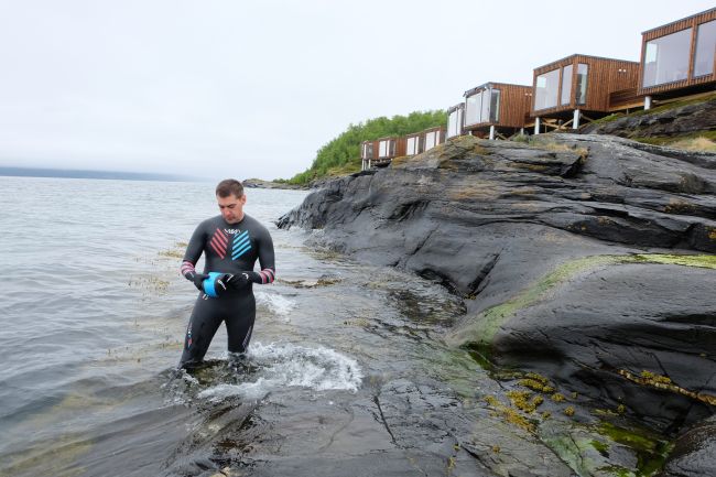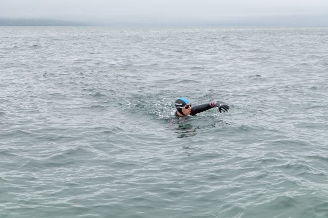 На следующий день видел стаю дельфинов, но в такой холодной воде вряд ли бы получилось до них доплыть.