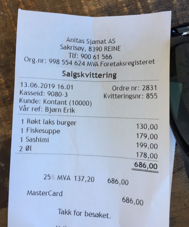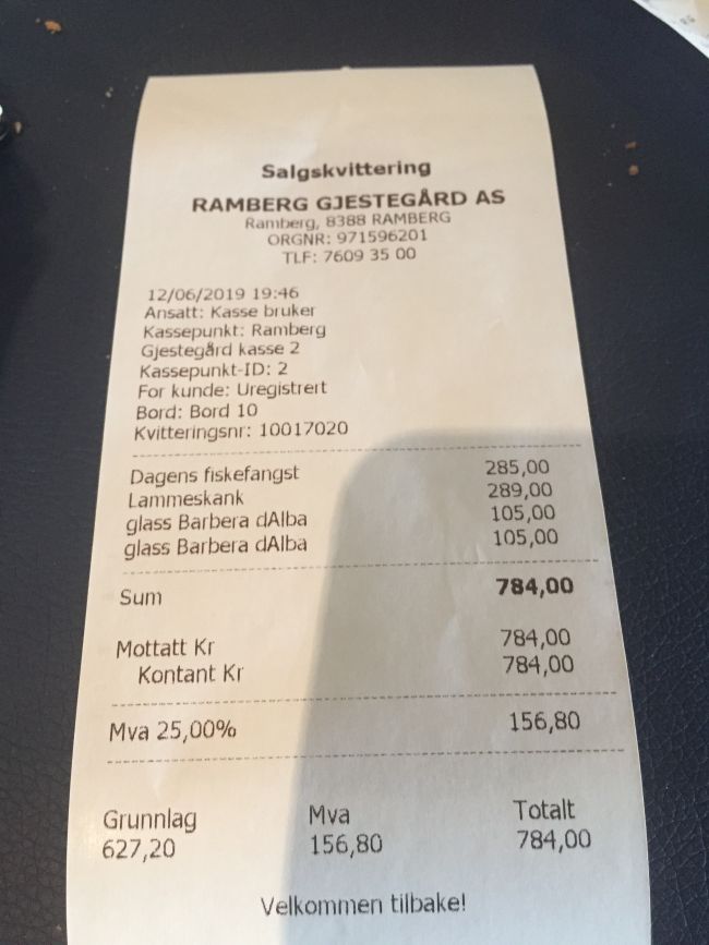 почти 80 евро за треску, ягненок и 2 бокала красного вина. это был хороший ресторан в Норвегии