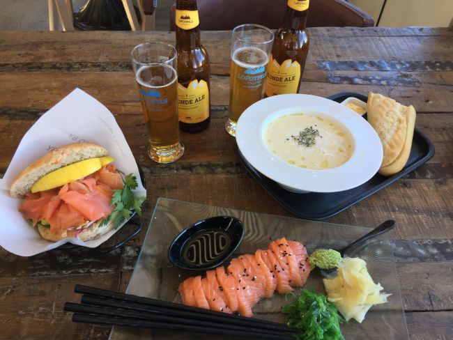 17 евро за стейк из красной рыбы + салаты