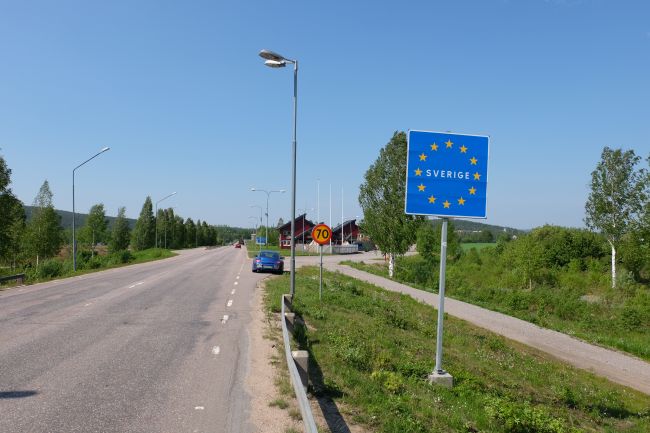 На севере дорога идет вдоль Швеции и можно заехать туда. Границ там нет, только знак