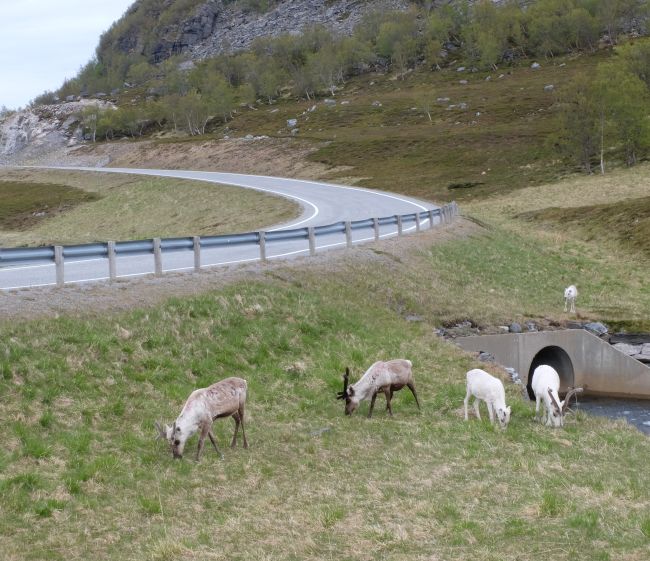 В этой части Норвегии уже тундра с оленями. Местами даже снег лежит, хотя это середина июня