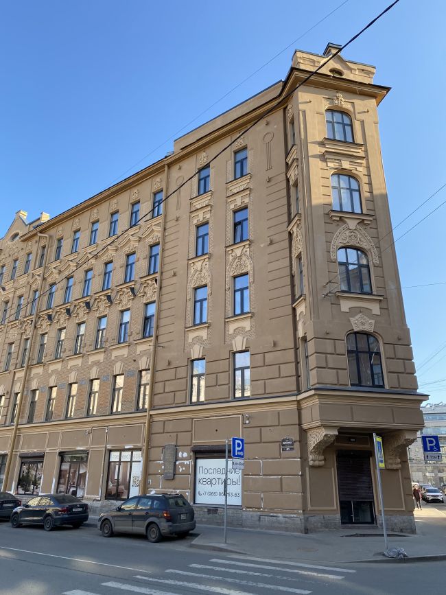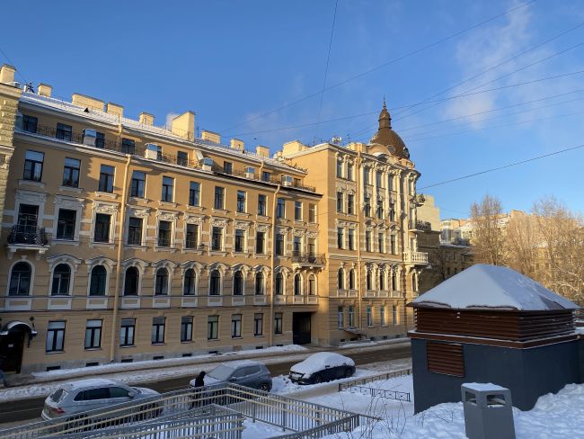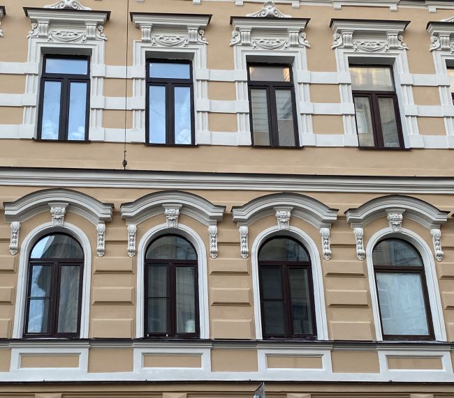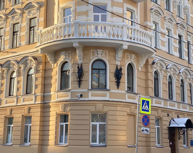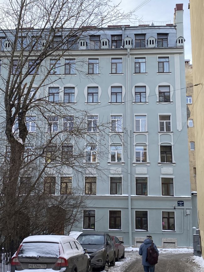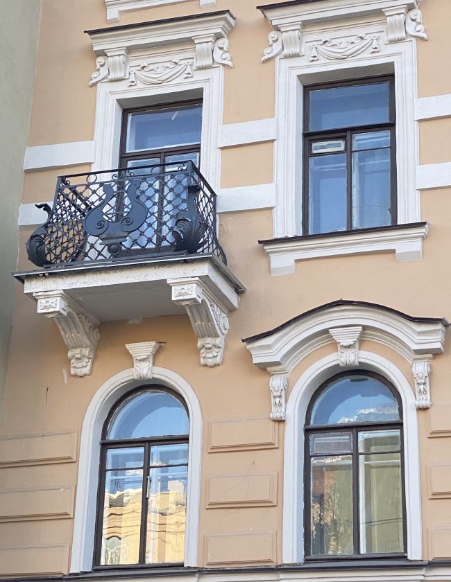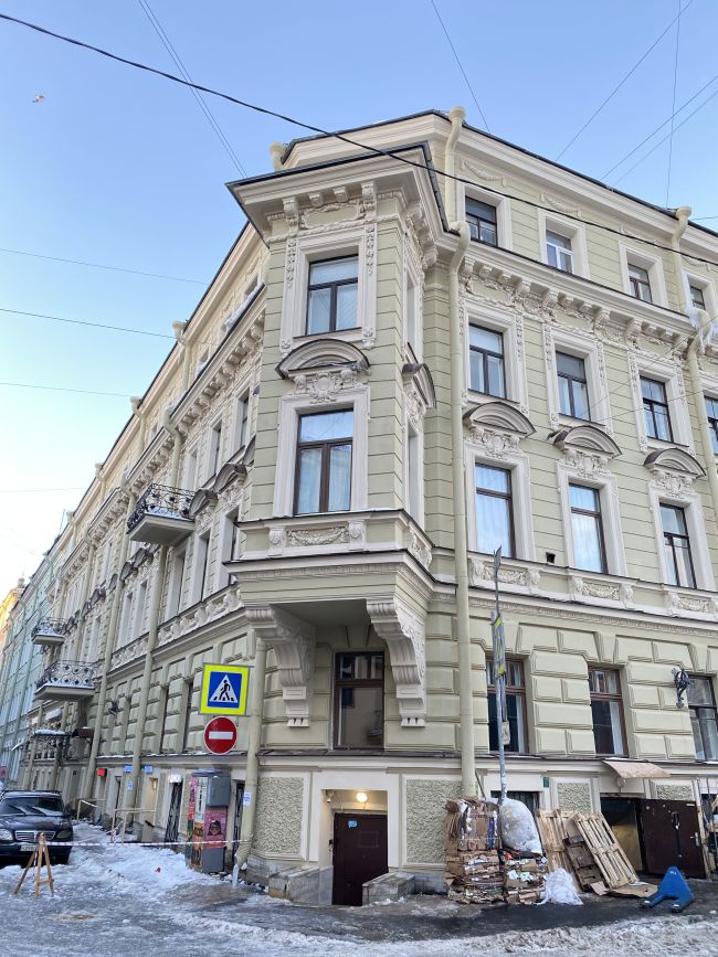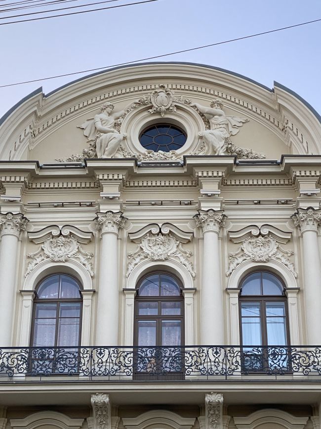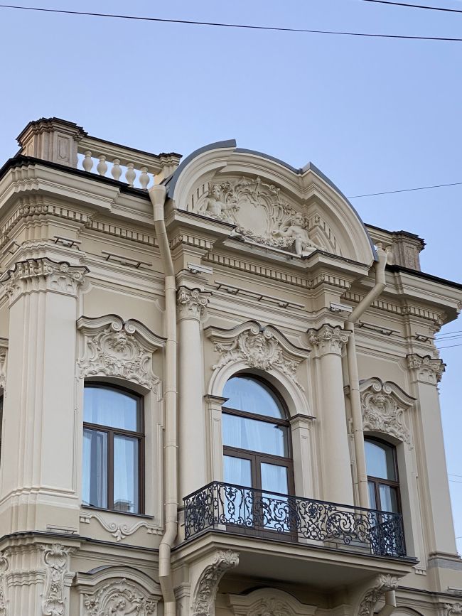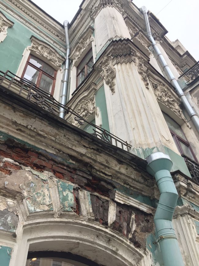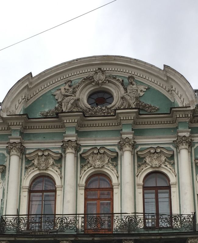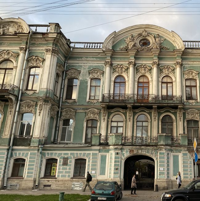 Дом Бутурлиной на улице Чайковского был в ужасном состоянии. К сожалению исторический цвет был песочного цвета, поэтому пришлось перекрасить из зеленого. Хотя зеленый идеально подходил, напоминая Эрмитаж